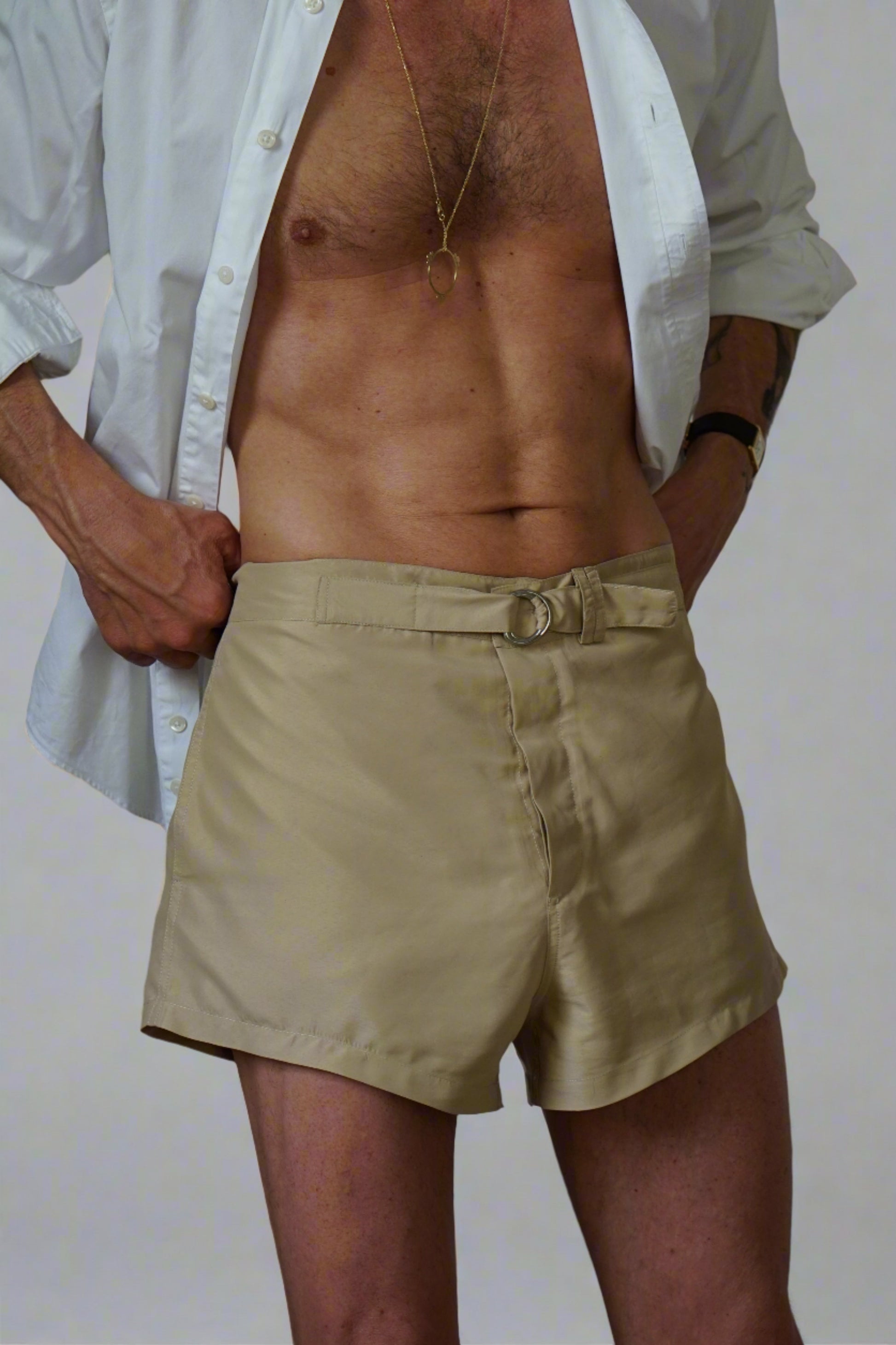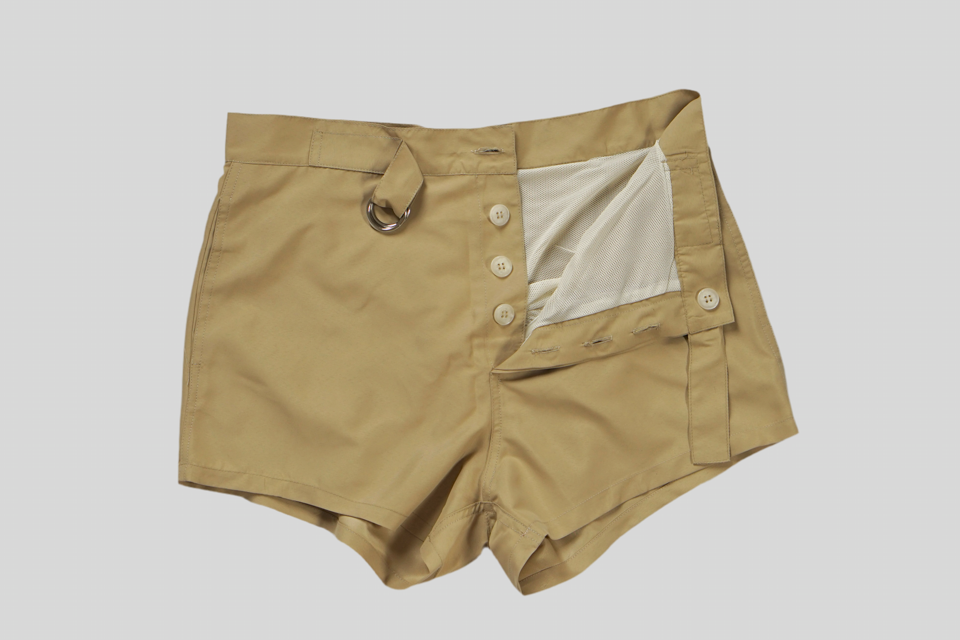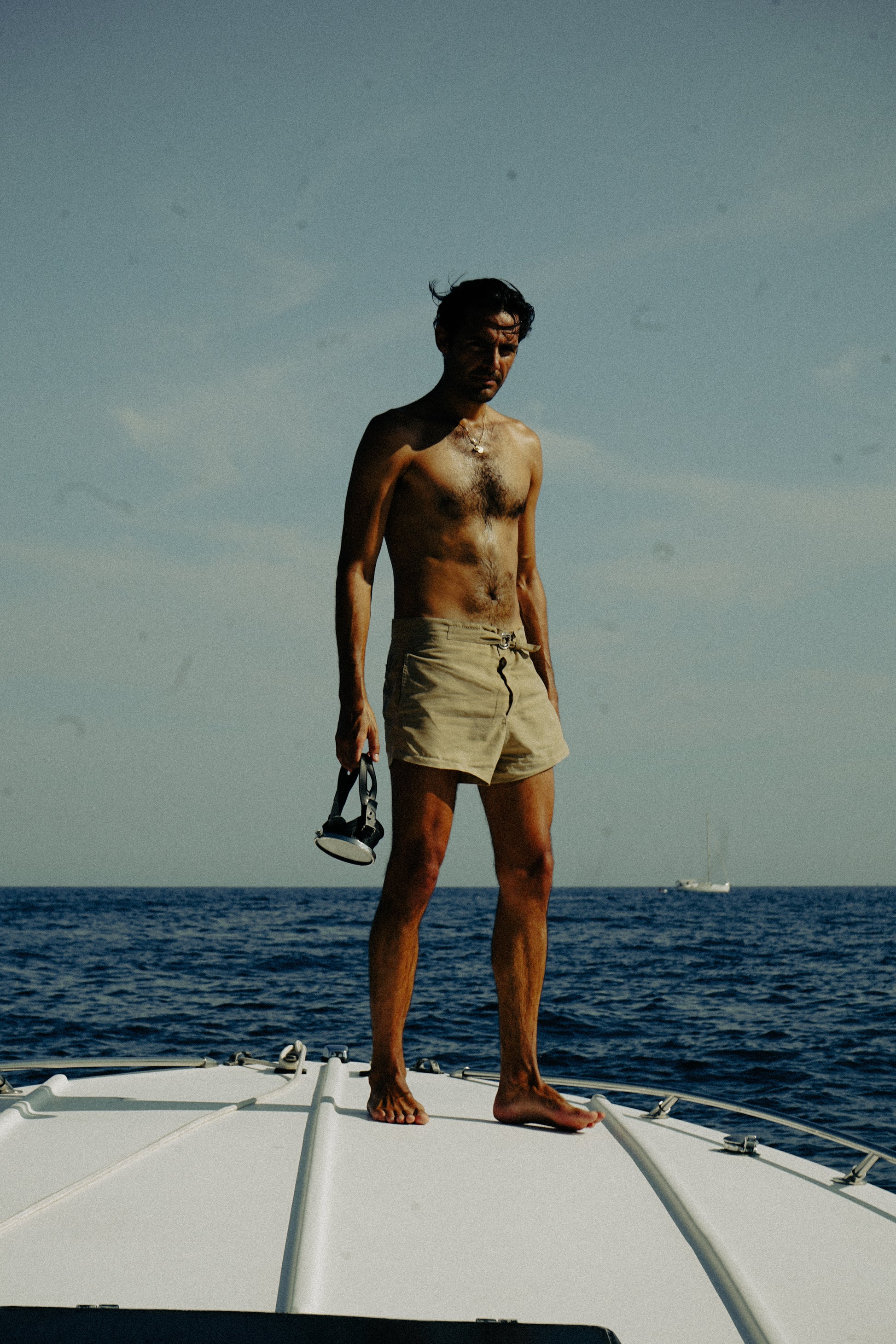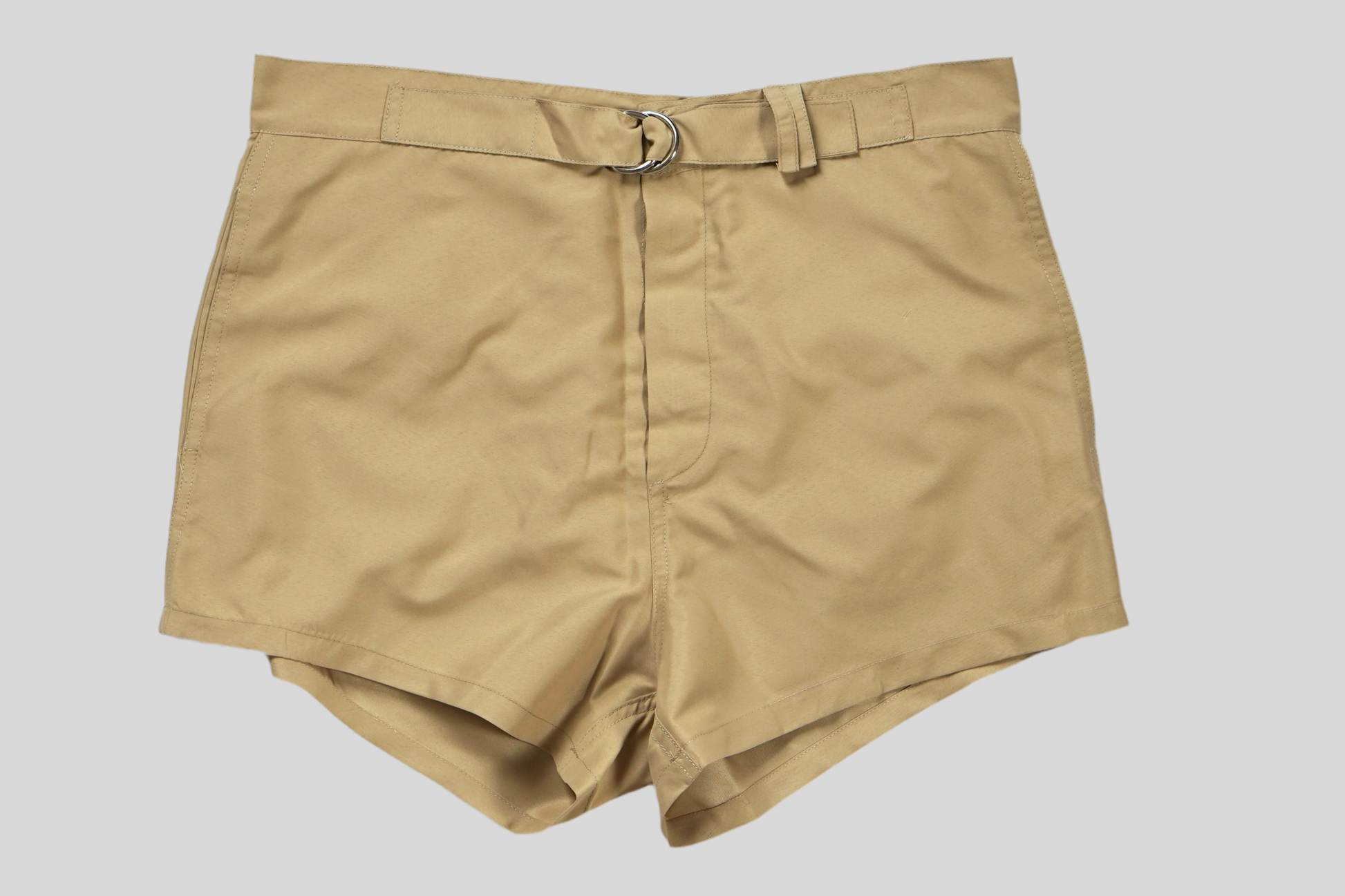 With its very lightweight recyclable polyester fabric, the Beige model is the most sporty of the MANIAKOS collection. The fabric has a slightly brushed aspect, similar to the original swim trunks which were in cotton. The fabric also tends to wrinkle when dry, which gives it a very cool vintage touch when worn "hard".